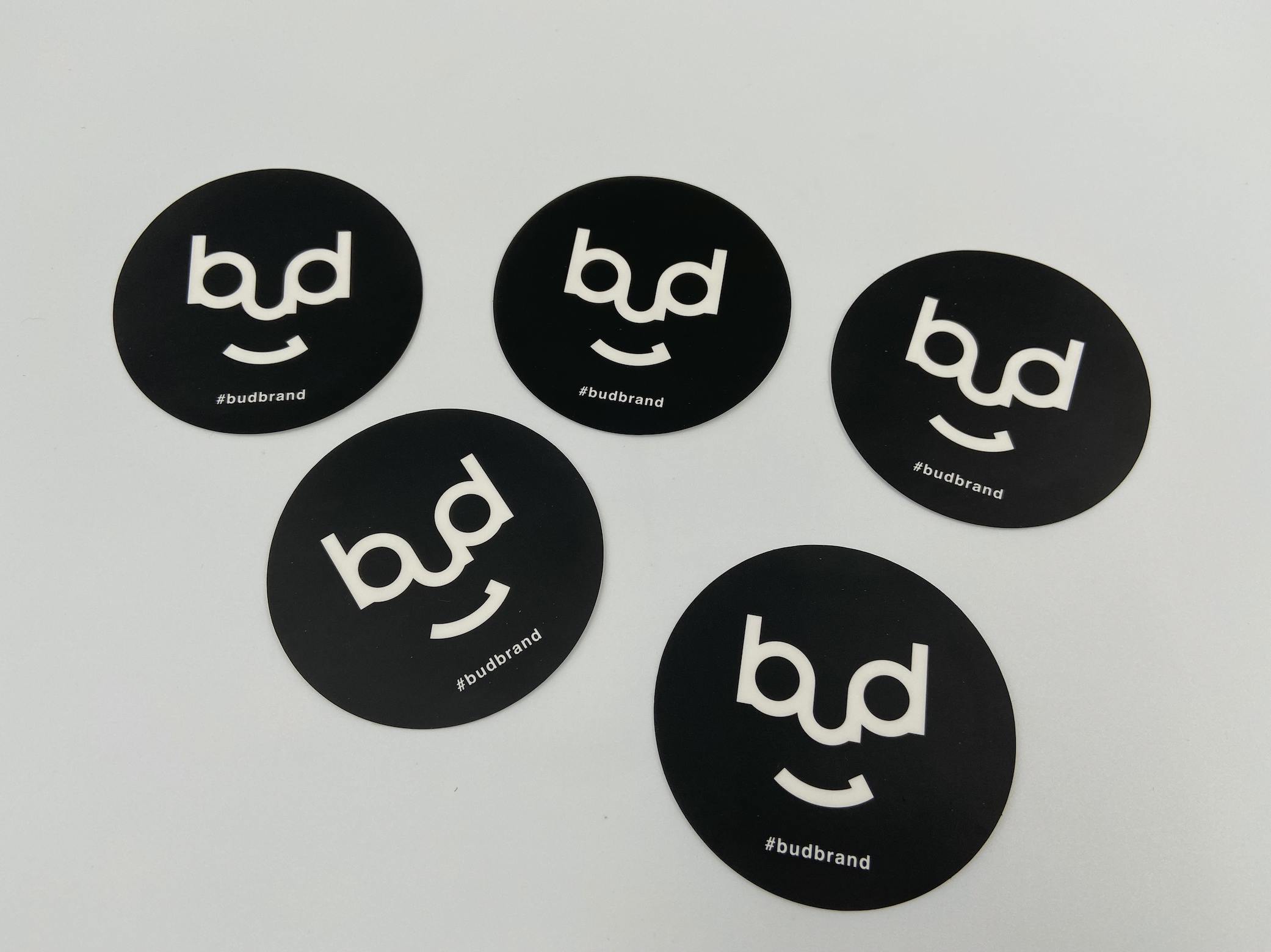 bud brandオリジナルステッカーを2枚お送りします。パソコンやファイルなど好きなところに貼って様々な場所へ連れ出してください。カラーはblackとblueをご用意しています。カラーは選べません。