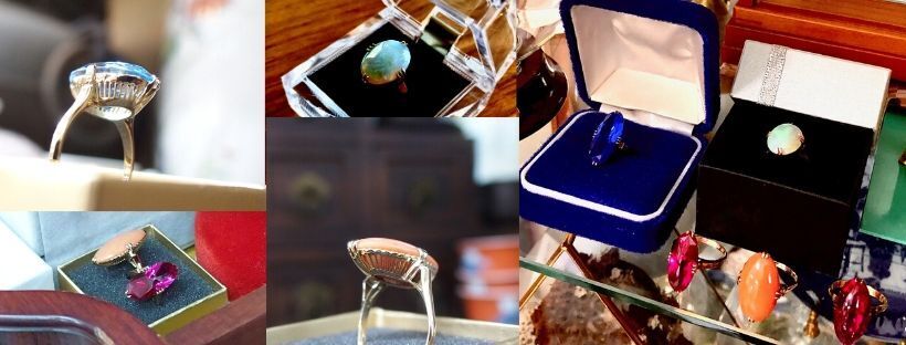 一方で、舶来物への憧れからか、鮮やかな赤や青や緑の合成石が付いている指輪もあります。恐らくコストを掛けずに少しでも舶来物の宝石に似せて作った職人さんの計らいなんでしょう。