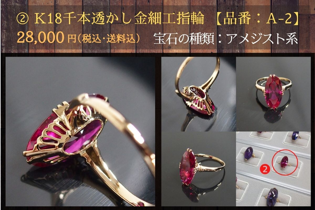 ②【 K18 千本透かし金細工指輪 NoA-2】