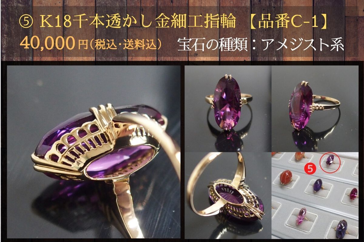 ⑤【 K18 千本透かし金細工指輪 NoC-1】