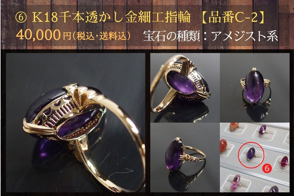 ⑥【 K18 千本透かし金細工指輪 NoC-2】