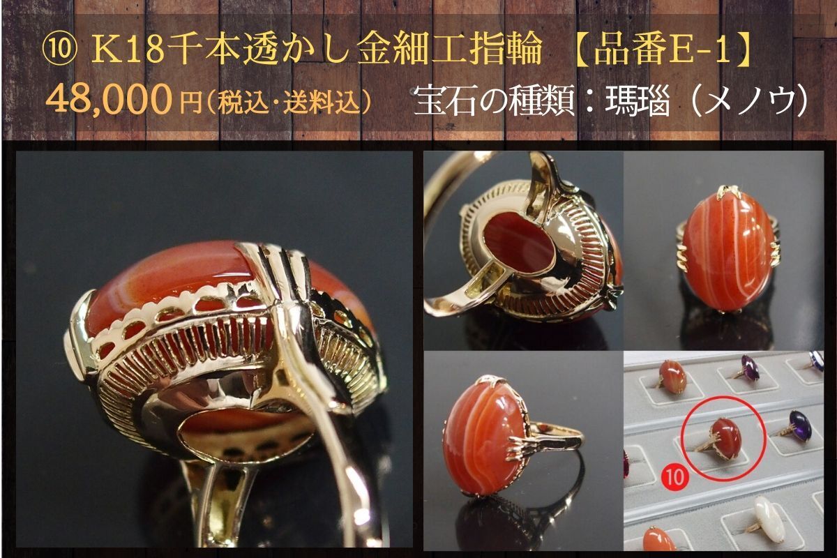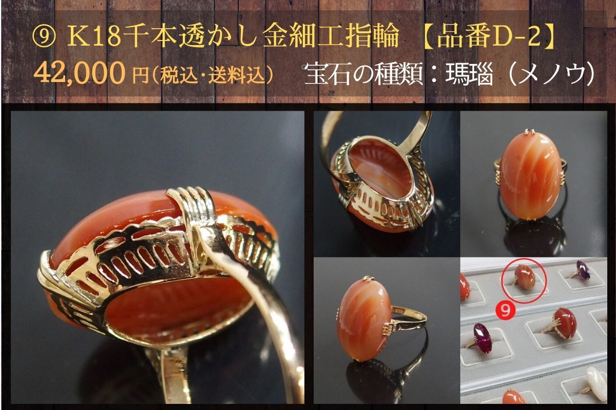 ⑨【 K18 千本透かし金細工指輪 NoD-2】◆透かし細工は繊細ではありませんが、お石は大振りで厚みのあるメノウが施された純和風テイストの指輪です。