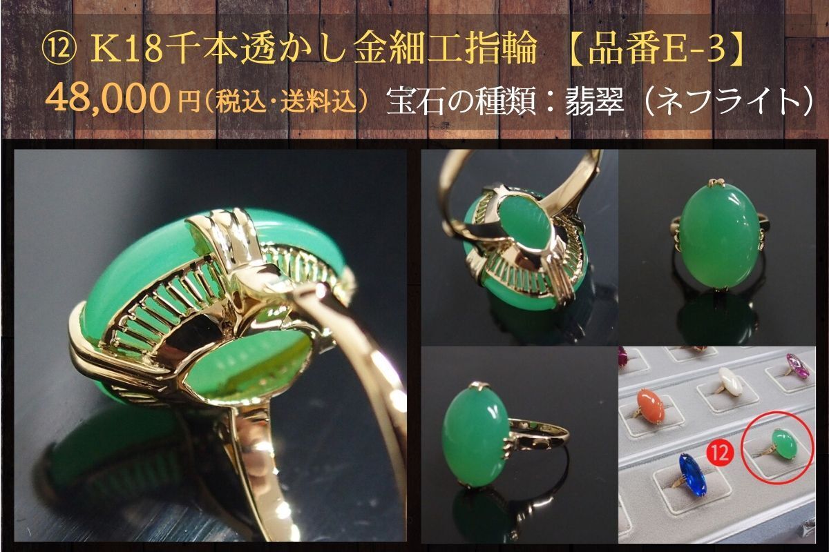 ⑫【 K18 千本透かし金細工指輪 NoE-3】