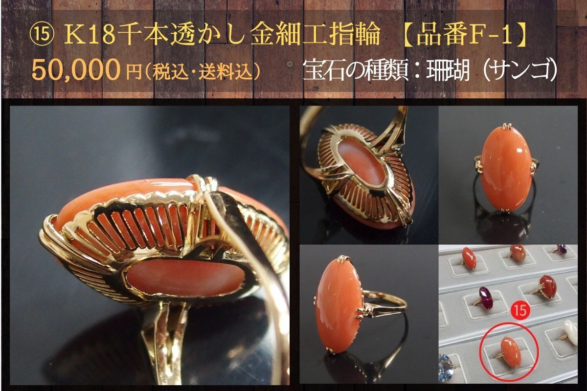 ⑮【 K18 千本透かし金細工指輪 NoF-1】