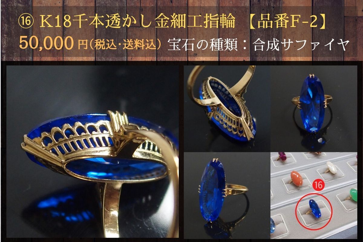 ⑯【 K18 千本透かし金細工指輪 NoF-2】