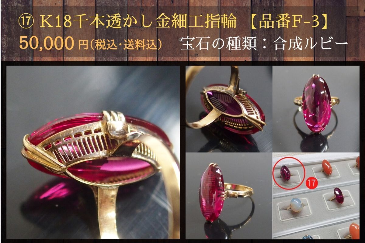 ⑰【 K18 千本透かし金細工指輪 NoF-3】