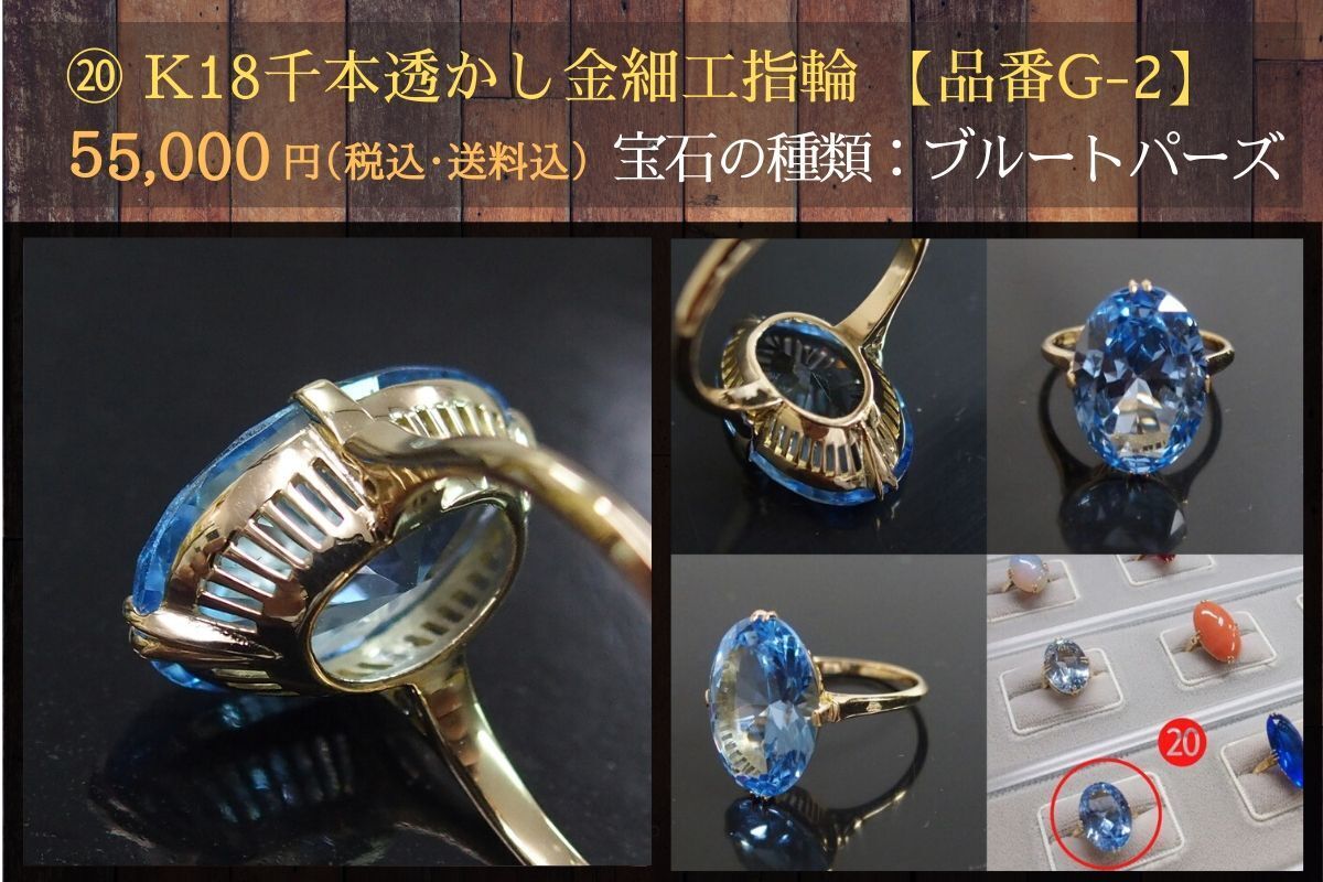 ⑳【 K18 千本透かし金細工指輪 NoG-2】