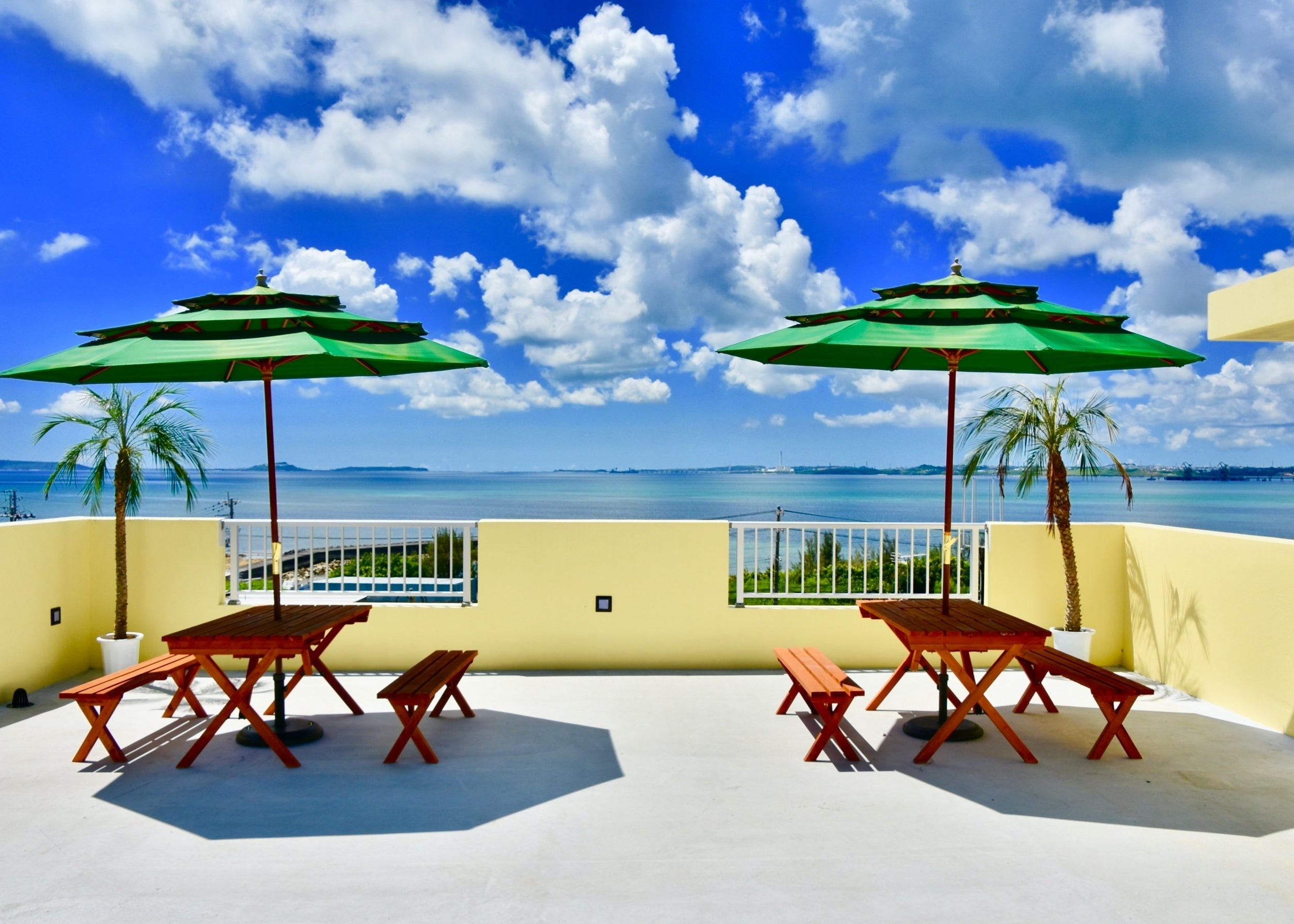 丸々貸切で海が観える屋上テラスのBBQテラスも貸切です。