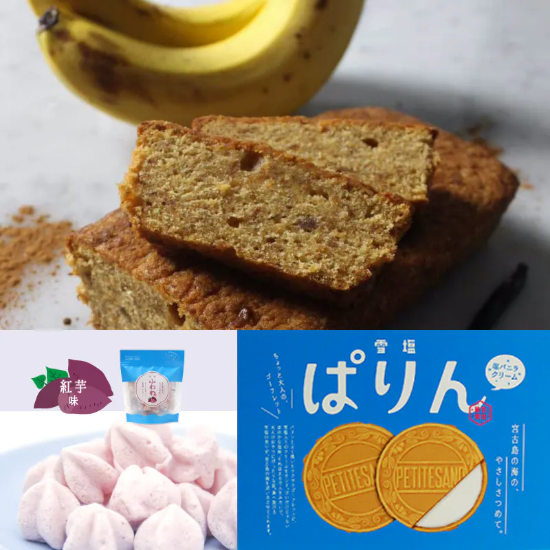 ココナッツ、紅芋、黒糖の3種類のアソートをご家族で楽しんでください。