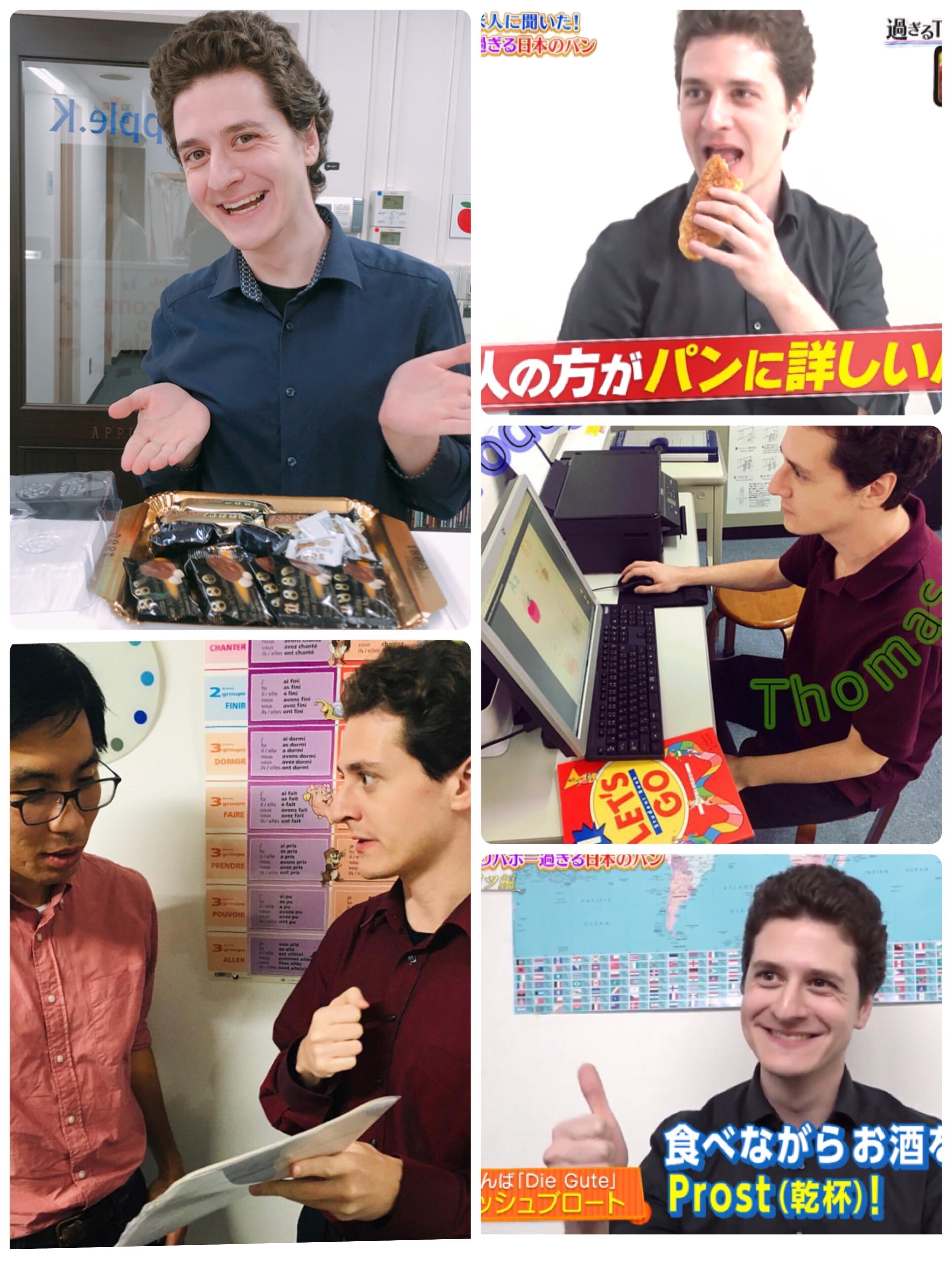 アップルkでは講師歴4年目になる彼ですが、実は先月、「なるみ・岡村の過ぎるTV」毎日放送テレビのコーナーに出演しました!流暢な日本語で好きなパンについて語っていました。ご覧になった方はおられますでしょうか!?