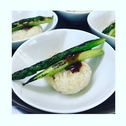 こちらの一品は立ち寄り場所の1つである藤原農園さんのアスパラを添えたリゾット。
