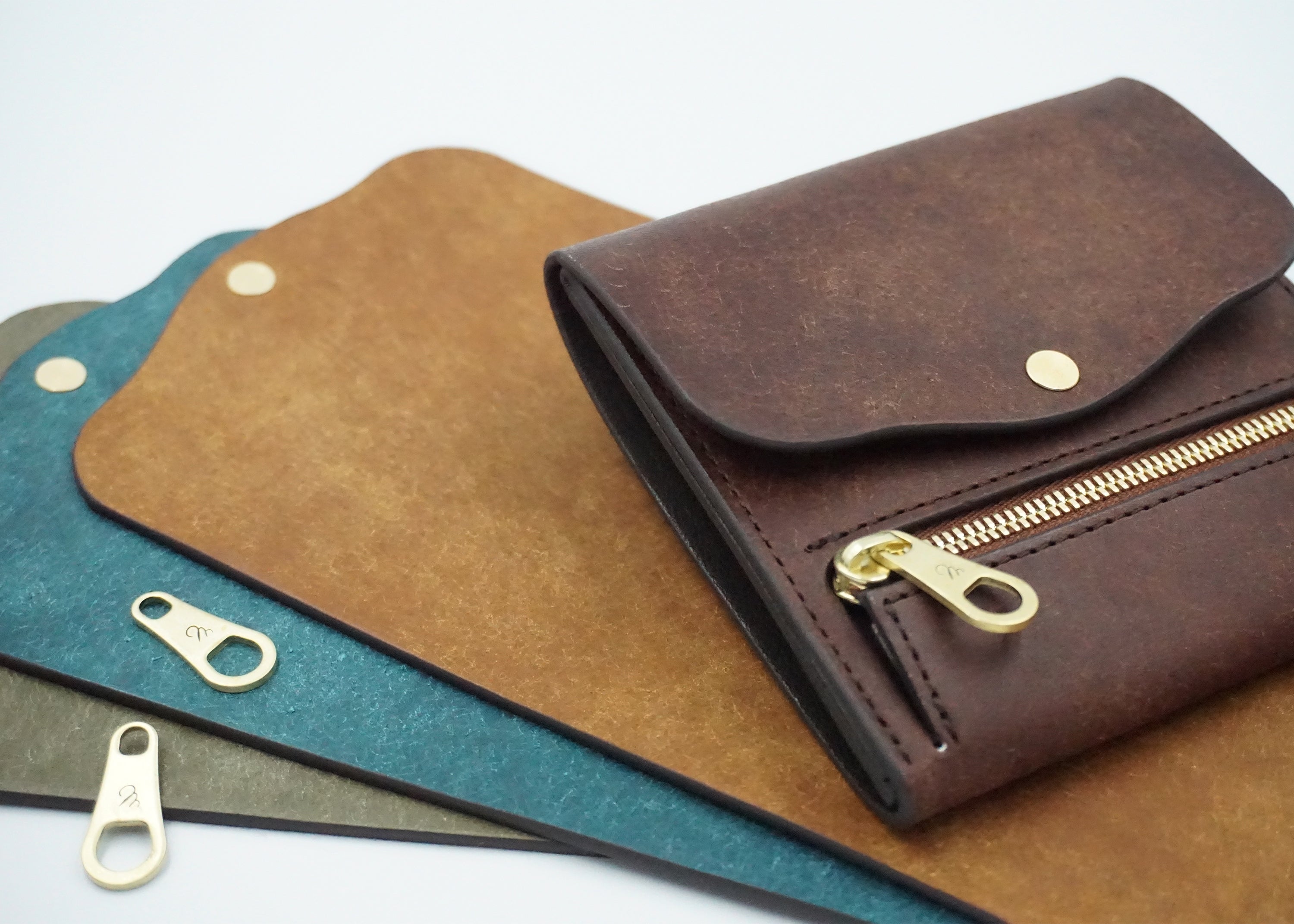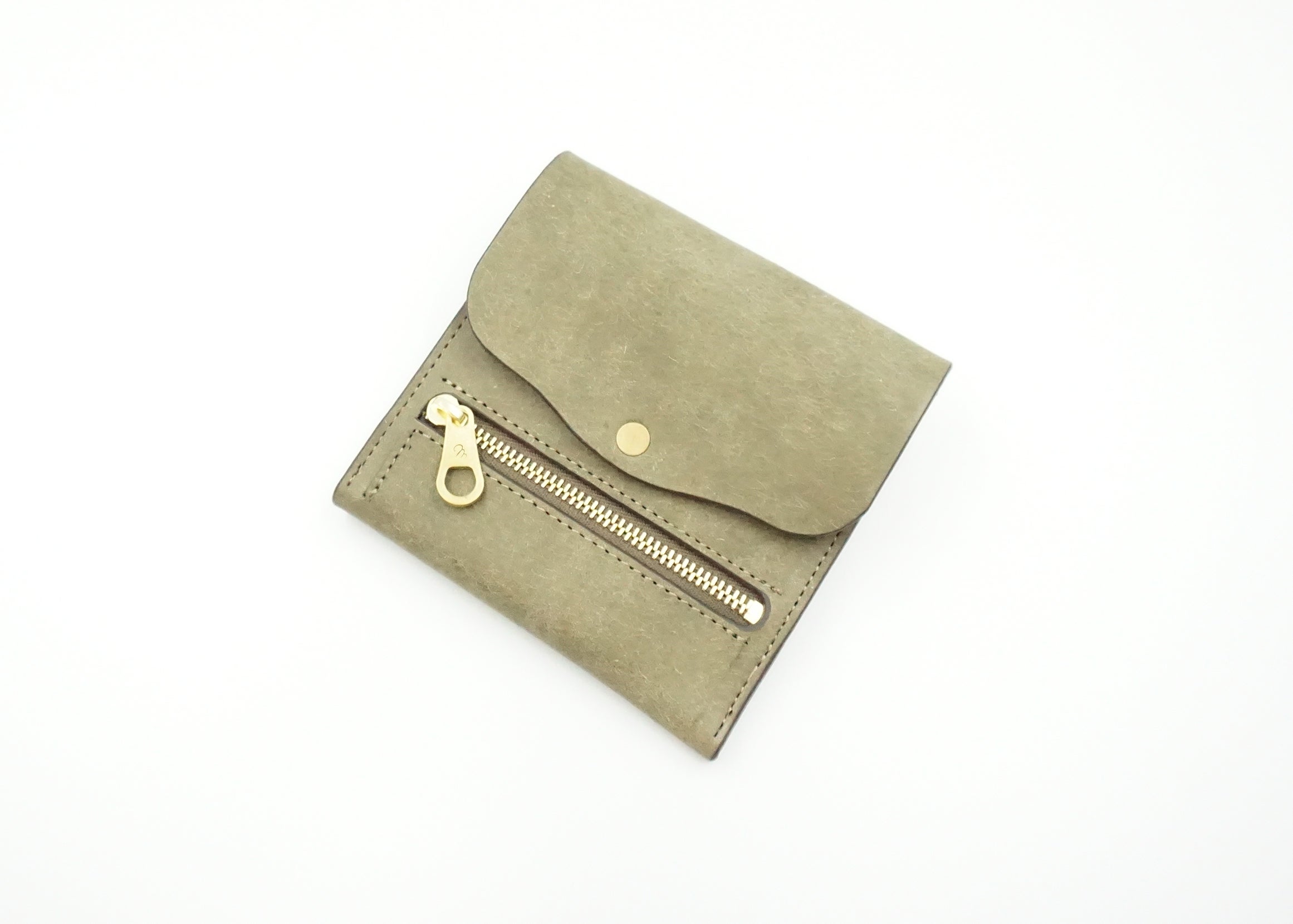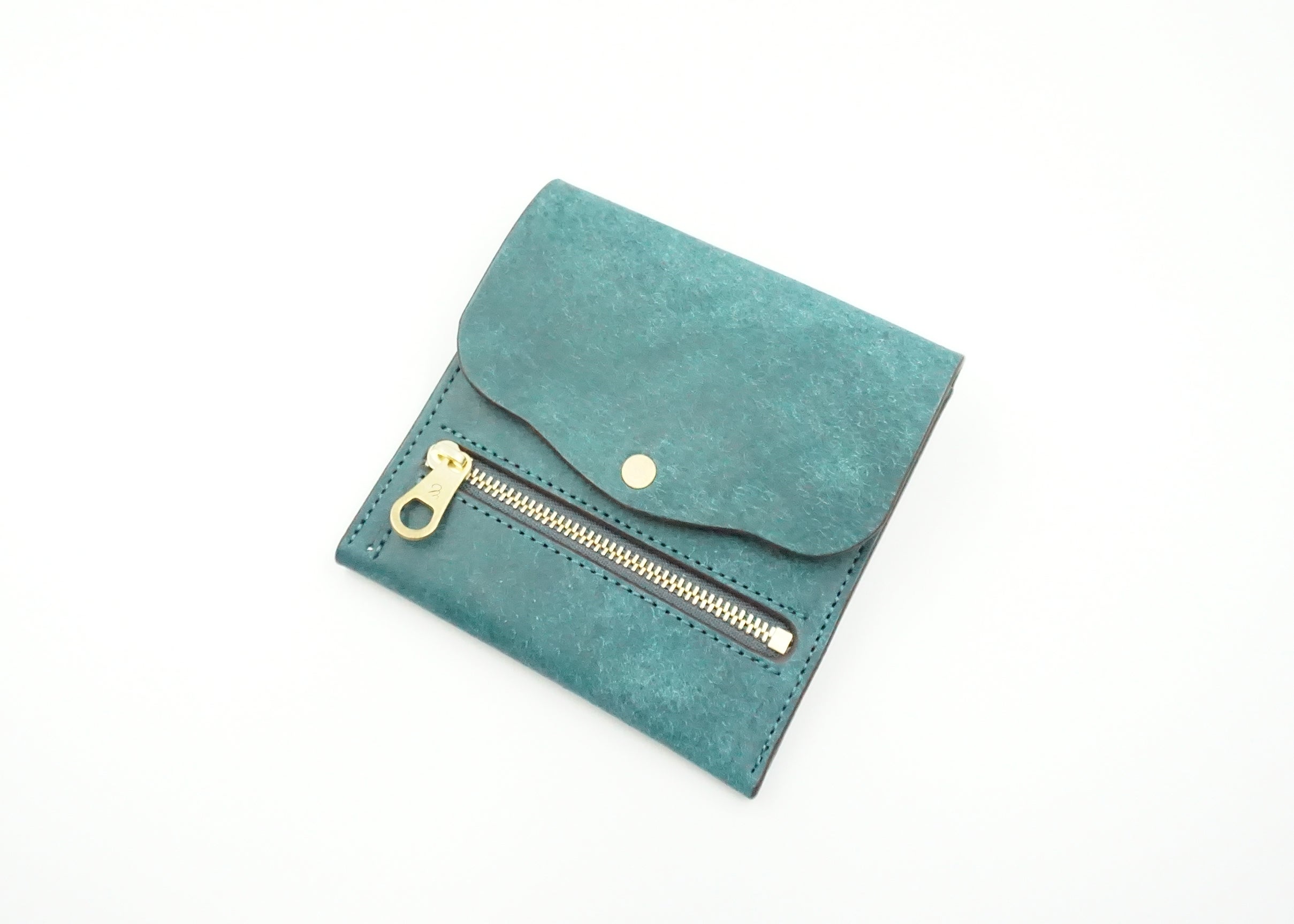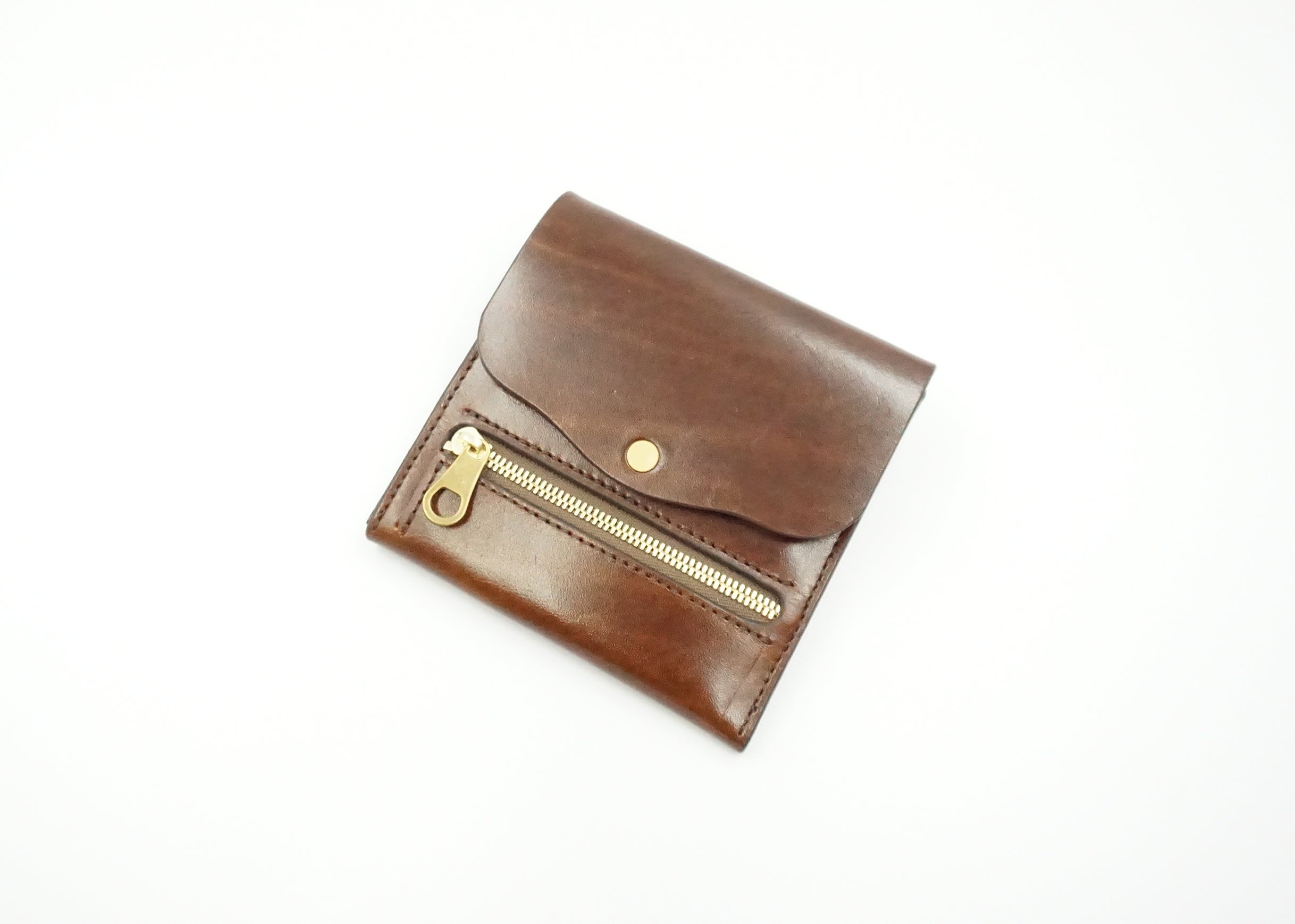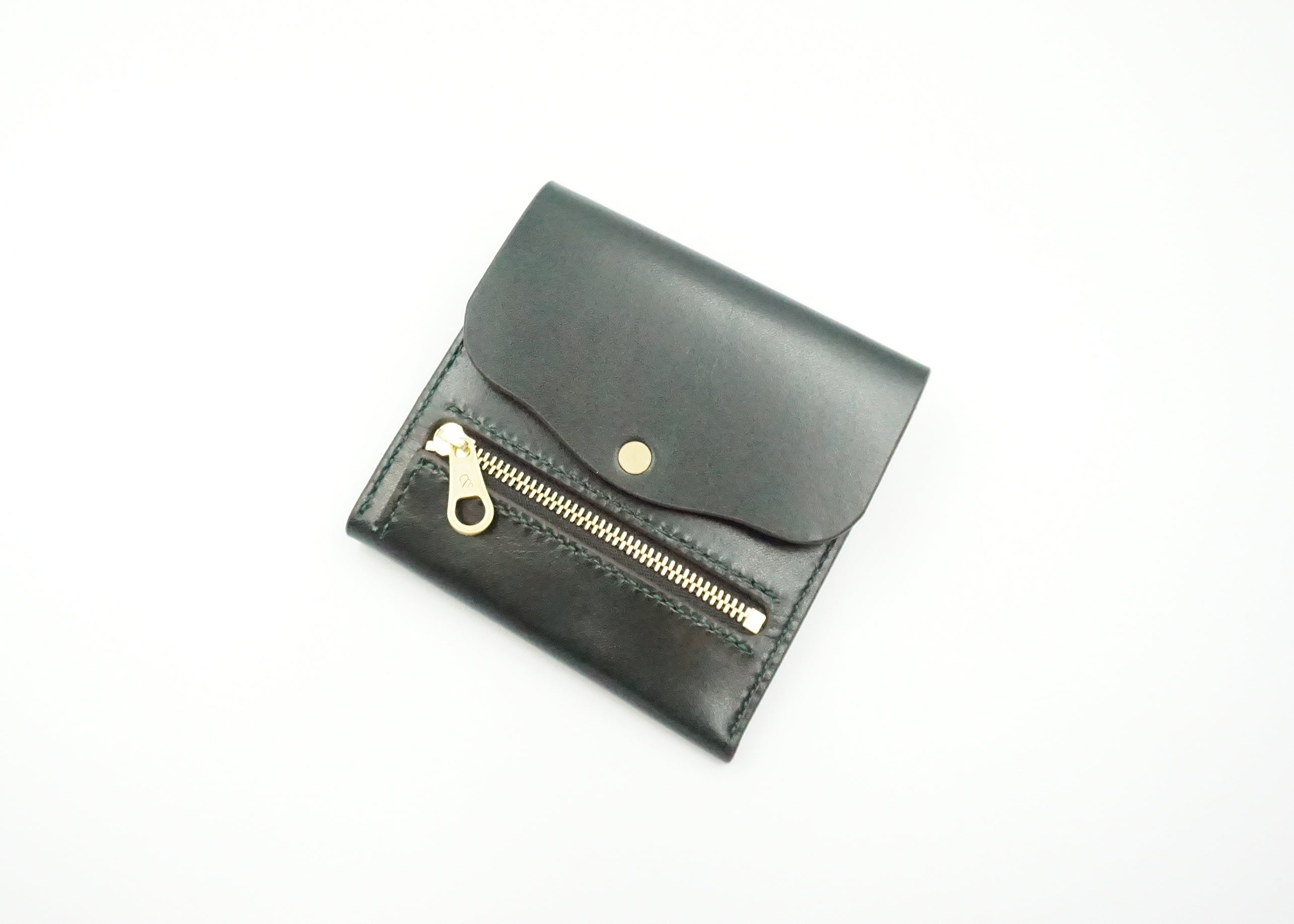 一枚革を三つ折りにして、コインケース及びカードケースを形成するために必要な最低限の縫製を行うことによって、紙幣・カード・コインを収納可能にする画期的なデザインに対して、意匠権を出願済みです。