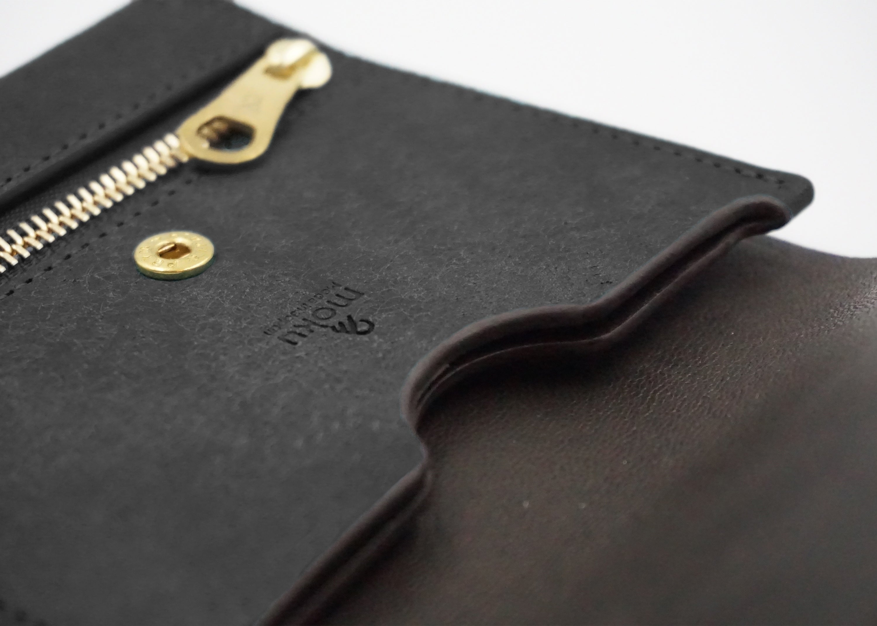 ※ICHIは表地と裏地を張り合わせているという意味では一枚の革ではありません。ICHIで表現している「一枚革」とは、財布の収納部や蓋を形成するための革同士の裁縫などの処理がないことを指します。