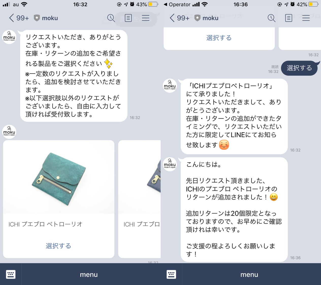 リクエストいただきました製品が追加される場合、リクエスト頂けた方に限定して、LINEにてお知らせ致します。