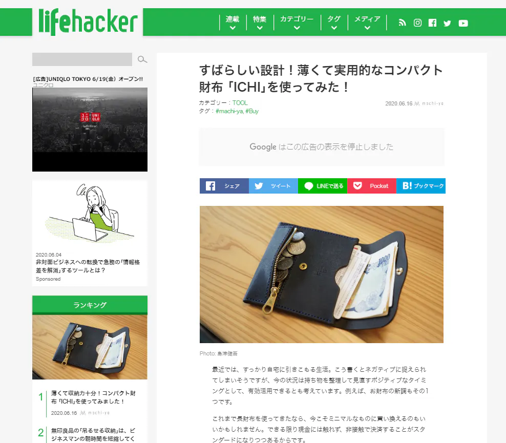 ライフハッカー[日本版]に本プロジェクトICHIのレビュー記事を掲載いただきました。