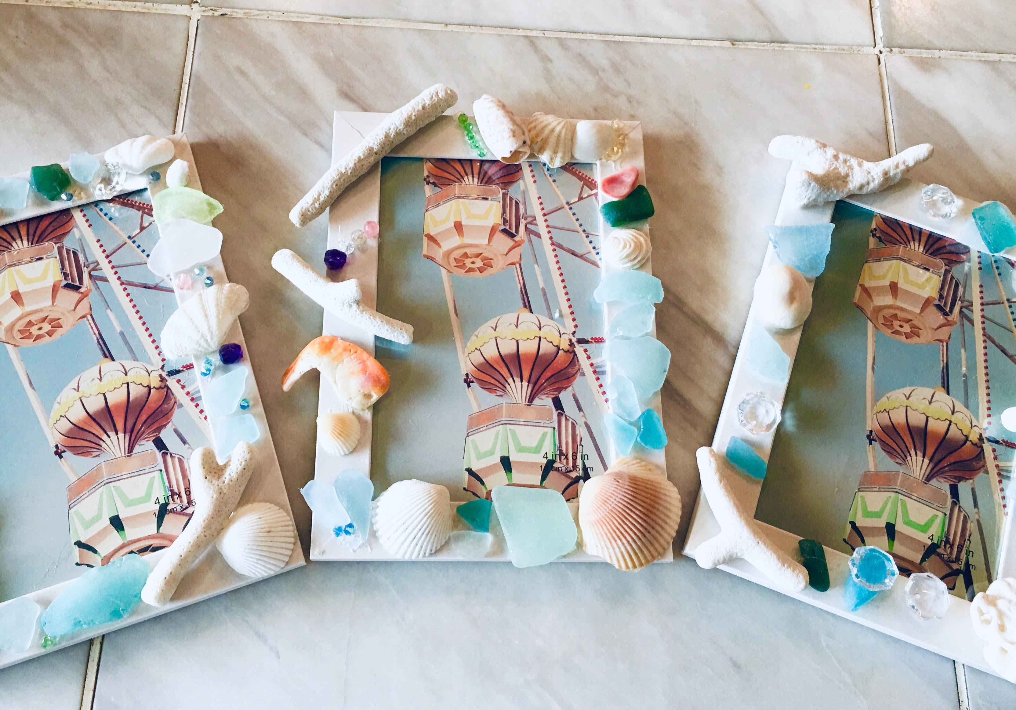 体験学習の中学生の作品 サンゴやシーグラスを使ったフォトフレーム