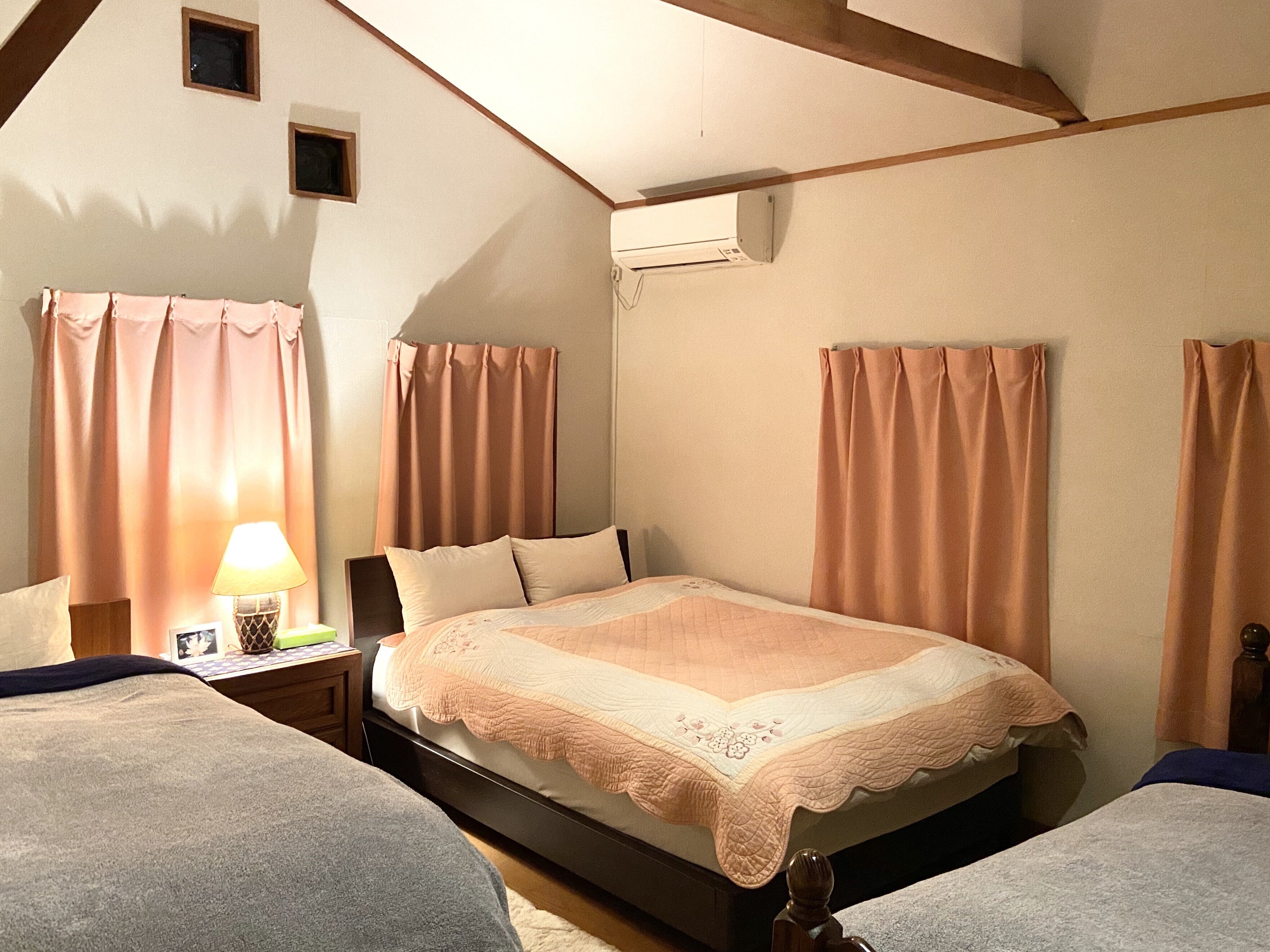 Room2はダブルベッドを用意いたしました。夜はゆったりお部屋でおくつろぎいただけます。