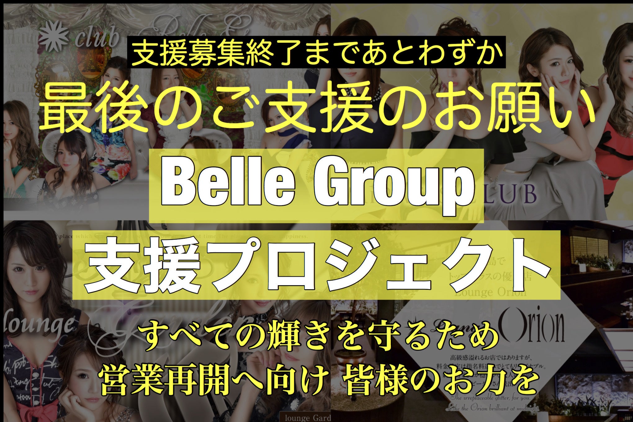 今回 べルグループとして初めてのクラウドファンディングになります。このクラウドファンディングで支援をつのる事も果たして正解なのか自問自答をし 恐縮の思いではありますが 今 ベルグループに携わっている キャスト、スタッフ約100名の生活や不安の叫びも聞き 「お店を無くさない、スタッフやキャストの生活と場所を守る為」自分自身何をしたらいいのか模索し いつまで続くかわからない現状の中 この企画を知って立ち上げたことによって、少しでも何かしらの希望が見いだされればという すがる気持ちの思いで 僭越ながら存続プロジェクトを登録させて頂きました。