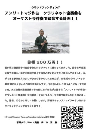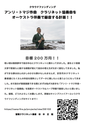 まだ楽器演奏できる間にまずは私が大好きな「アンリ・トマジ作曲・クラリネット協奏曲」を弦楽オーケストラ&ハープ伴奏で録音したいと思いました。