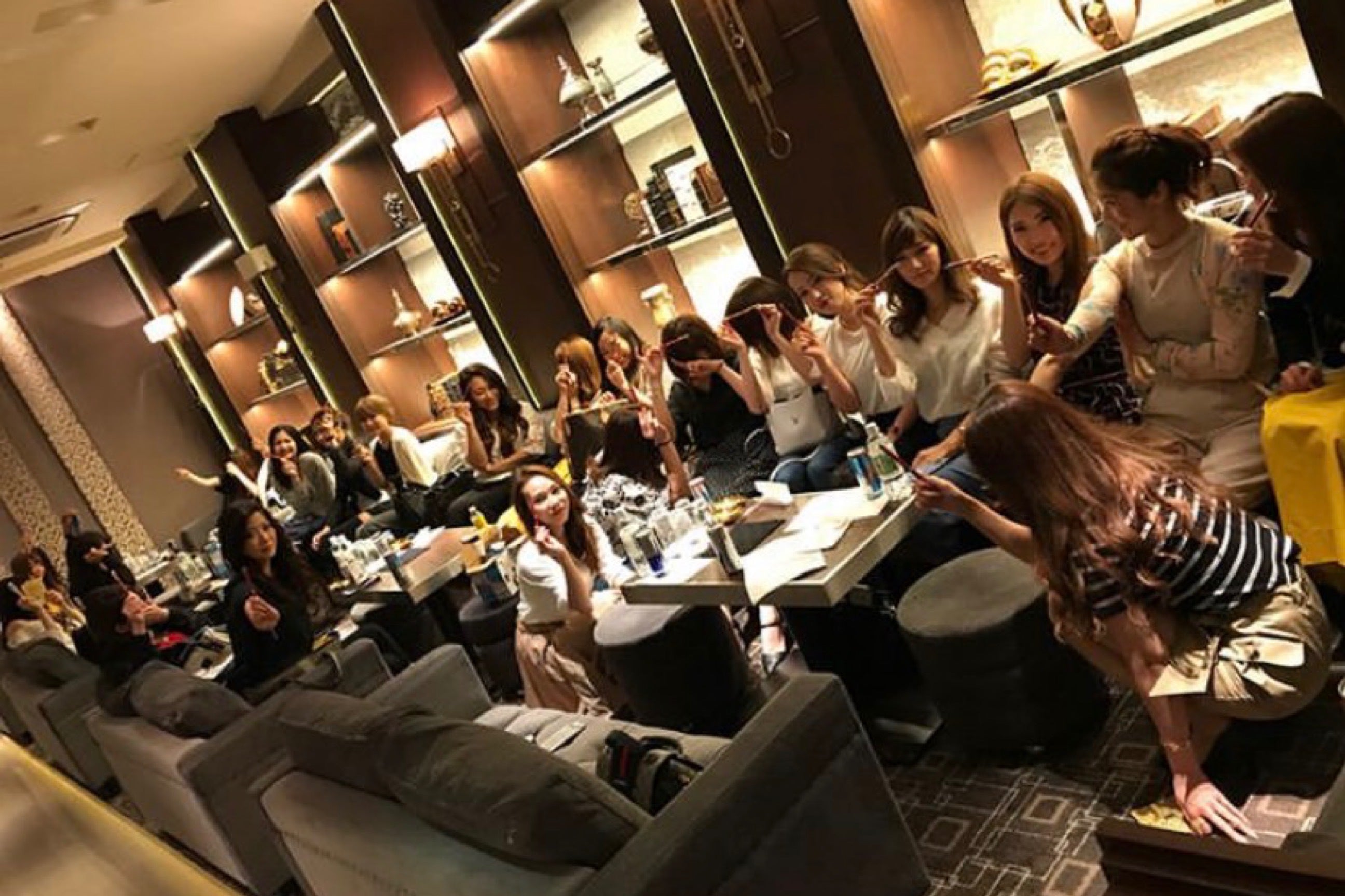 今年でオープン1年のミラノアグループの新店で、会員制のラウンジになります。1階から2階への吹き抜けに渡り廊下、まるでホテルのような内装に、会員制の安心感があります。