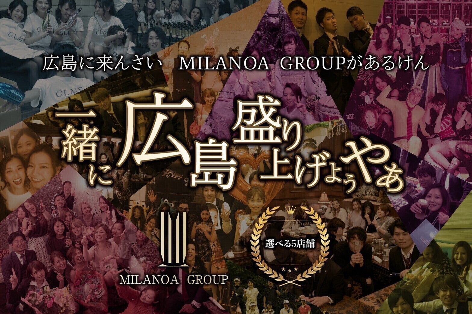 私共ミラノアグループ は、広島は流川という中四国で一番有名といっても過言ではない繁華街にて5店舗、「クラブ四季」、「クラブ櫻」、「ラウンジ ミラノア」、「ラウンジ グラミス」、「会員制ラウンジ ルブラン」を、素晴らしいお客様・従業員・取引業者様等、お店に関わる全ての人に支えられてきたお陰で、一番長い店舗ですと12年間もの間営業させて貰っております。