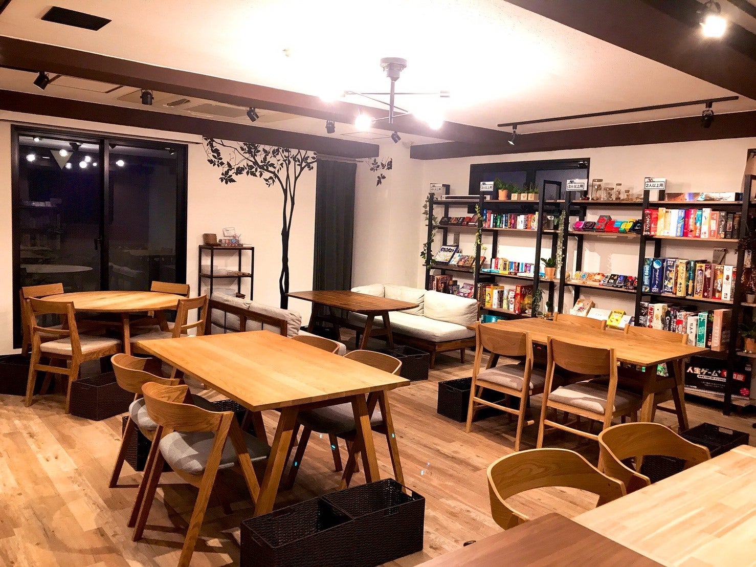 店内は木を基調とした温かみのある空間で、席と席の間にゆとりをもたせることで、会話が交錯せず、落ち着いてボードゲームに集中できるよう配慮しています。