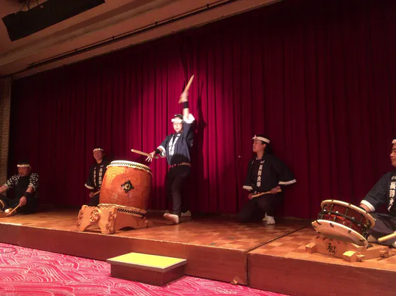 4月22日に東御市の緑風会・メロディ東部にて、一日に2回・お昼に一時間、夜に10分の公演を行わせていただきました。お昼の公演はおじいちゃんおばあちゃんに聞いていただきました。最初はただ聞いていただけの方もだんだんとリズムにのってきてくださり、神着太鼓を一緒にたたいてくれたおばあちゃんは年齢を感じさせない力強い音でした。