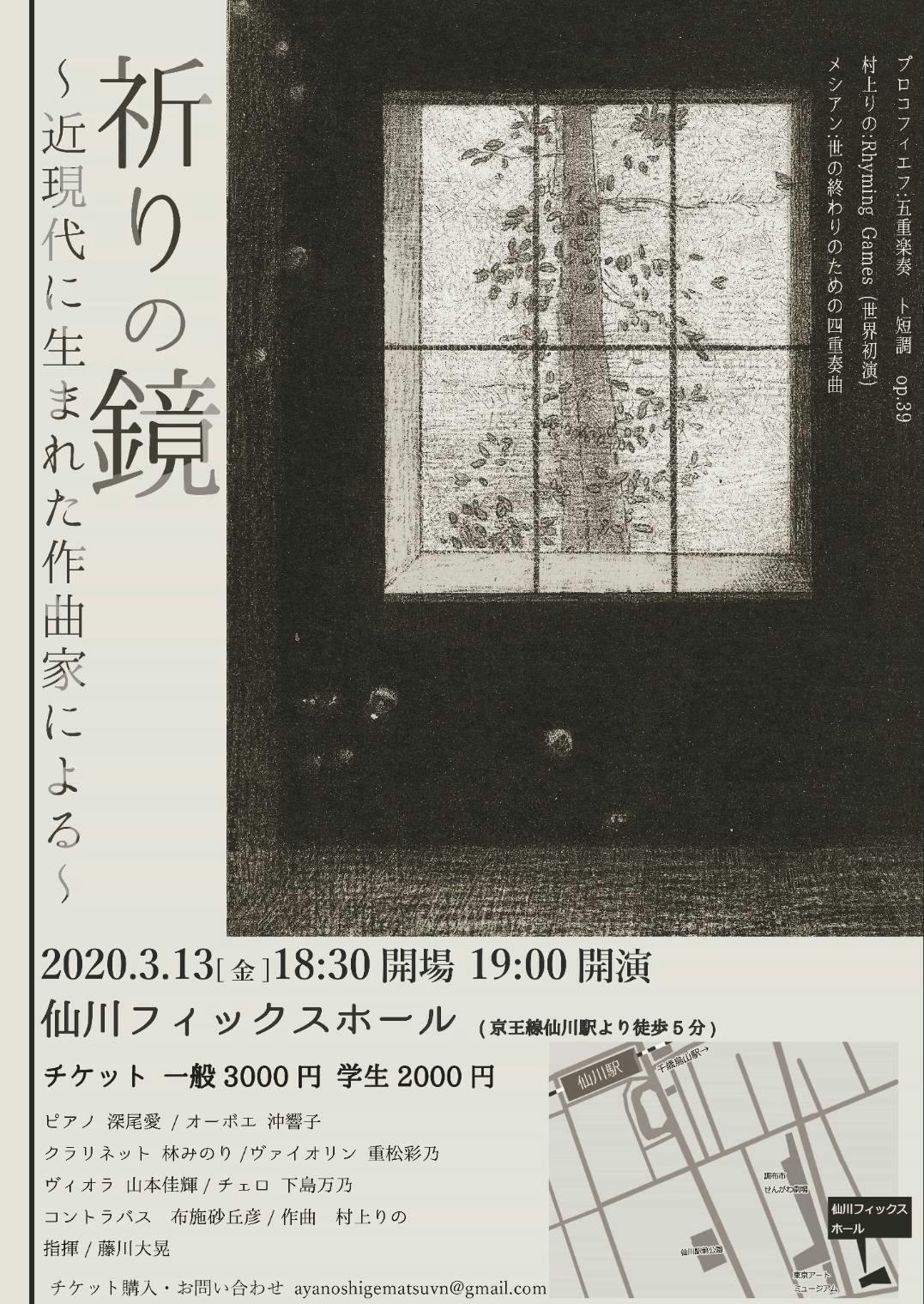 この演奏会のプログラムは「祈り」をテーマにプロコフィエフとメシアンという時代に翻弄された2人の作品と現代日本を生きる作曲家村上りの の新作の3曲で構成されています。