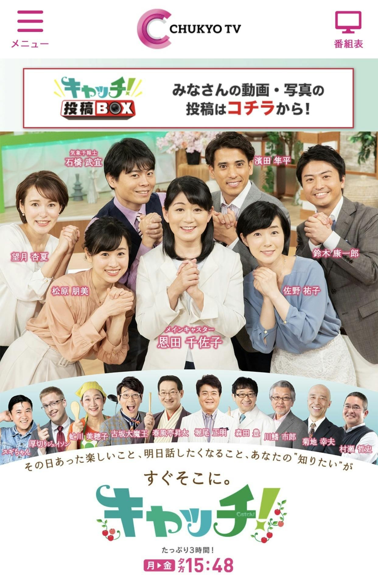 放送地域は愛知、三重、岐阜の3県になります。ご興味ある方がいらっしゃいましたら、ご覧になって頂ければと思います。