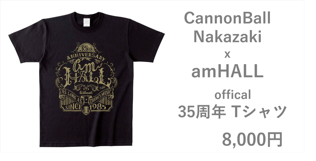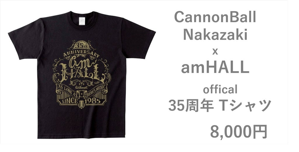 大阪中崎町の人気ショップ「CannonBall Nakazaki」のオリジナルブランド「Wile not」とのコラボで生まれたアムホール創業35周年オフィシャルTシャツです。