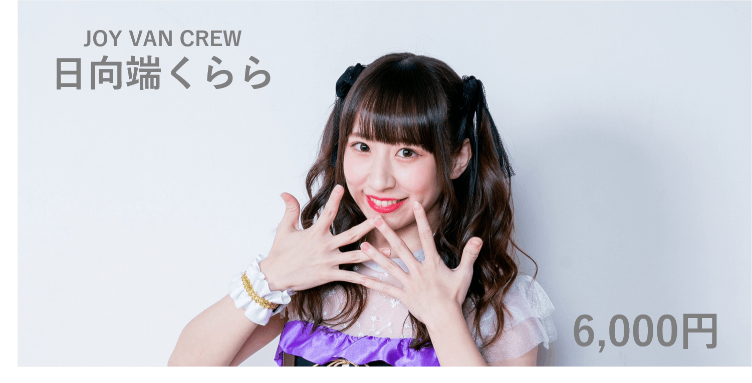 アムホールでワンマンライブ開催予定のアイドルグループ「JOY VAN CREW」のメンバー「日向端くらら」さまが、あなたのためだけに撮影するメッセージ動画をお送り致します。