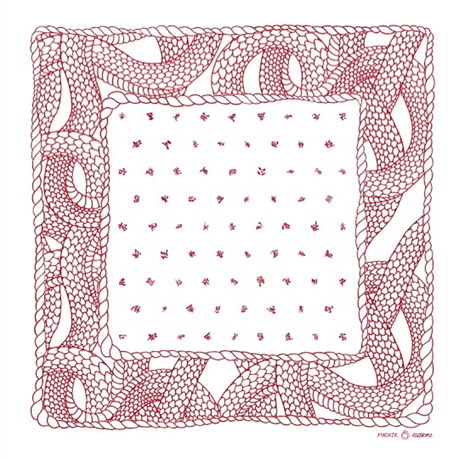 *2017年、LVMHプライズにて日本人初の特別賞を受賞した、NYを拠点に活動するファッションブランド【KOZABURO】。デザイナー・赤坂公三郎氏による『鐘』限定のバンダナ・スカーフ(白地に赤柄)を特別協賛にて制作していただきました!デザイナーの体験にちなんだ77字の漢字が配置され、その周りは蛇の模様(輪廻と幸運を意味)が描かれています。このプロジェクトでしか手に入らない限定品です!