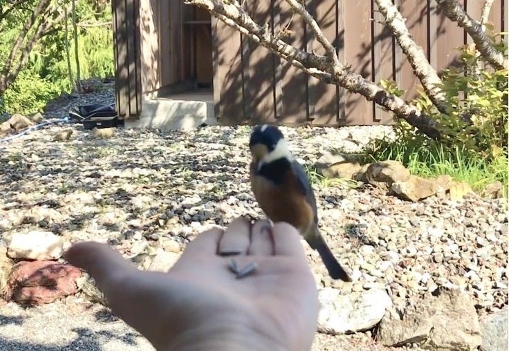 ヤマガラがヒマワリのタネを食べに来ます是非、今回のご支援を機会に、高知県の仁淀川へ遊びに来るきっかけになってもらえたらとても嬉しいです!
