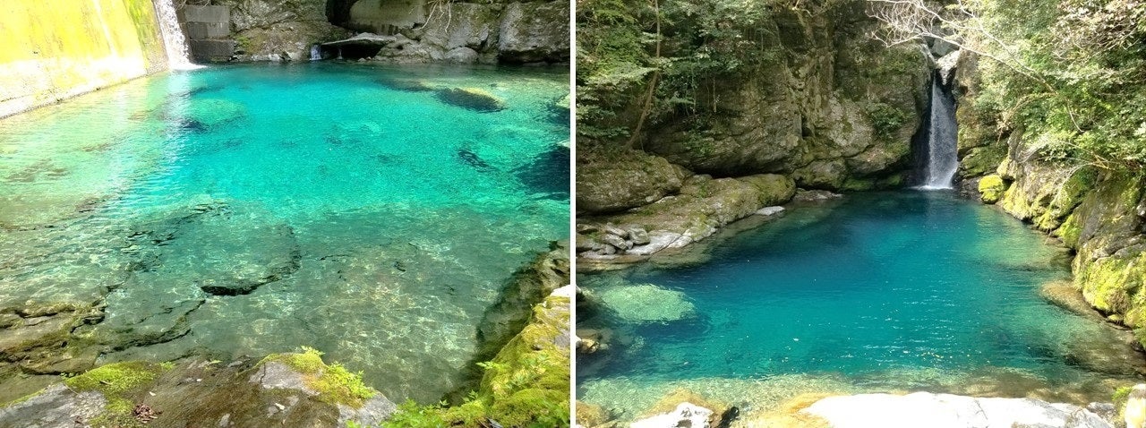 仁淀ブルーの名所 左【安居渓谷】 右【にこ淵】