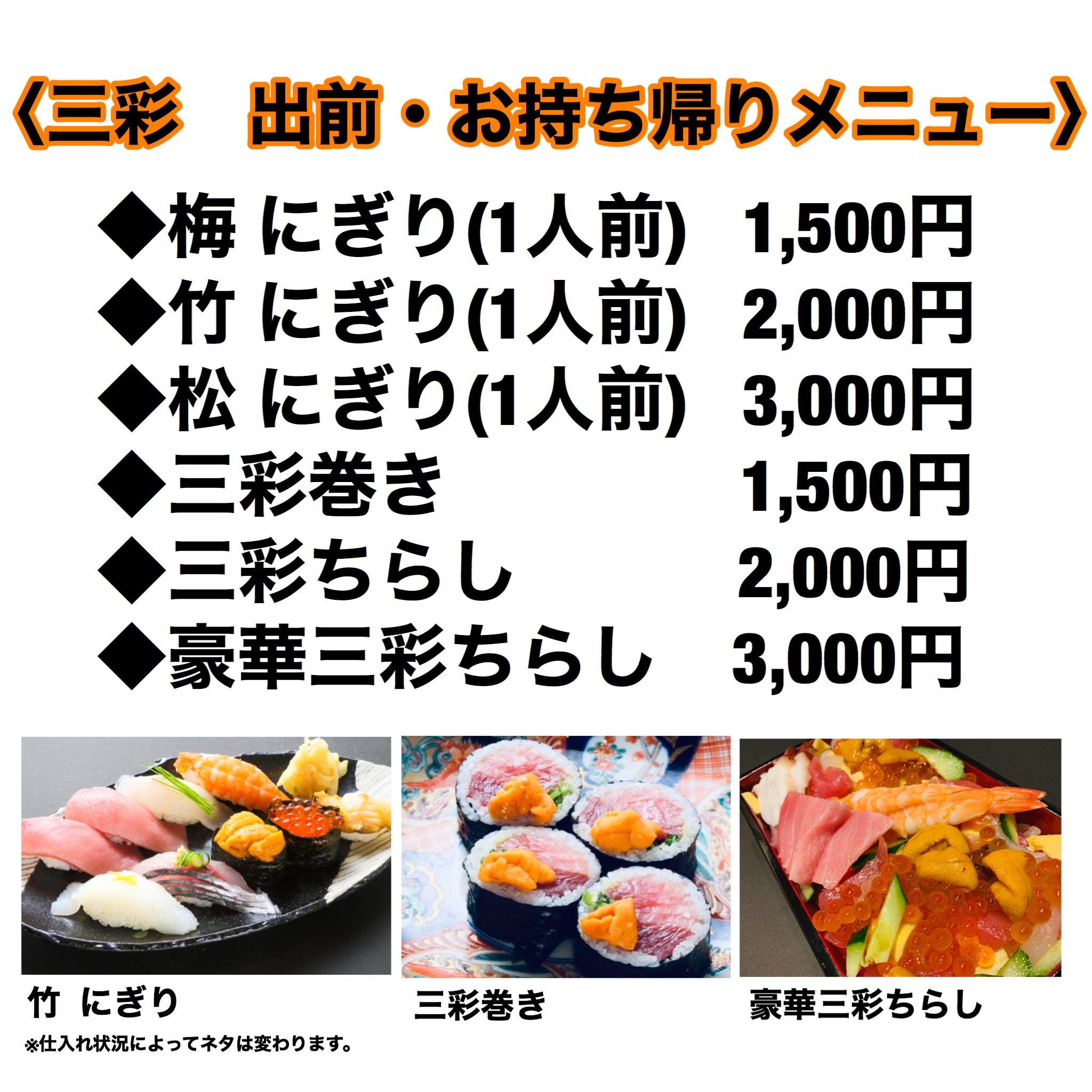 コロナ対策はバッチリしておりますが、お客様に少しでも安全にお寿司を楽しんでいただきたいので、テイクアウトと出前を始めました!