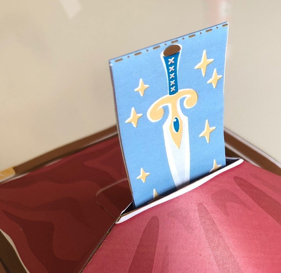 中級編『勇者の剣を探せ』 では切ったり、折ったり、貼ったりすることで剣が飛び出す宝物カードも作成できます!