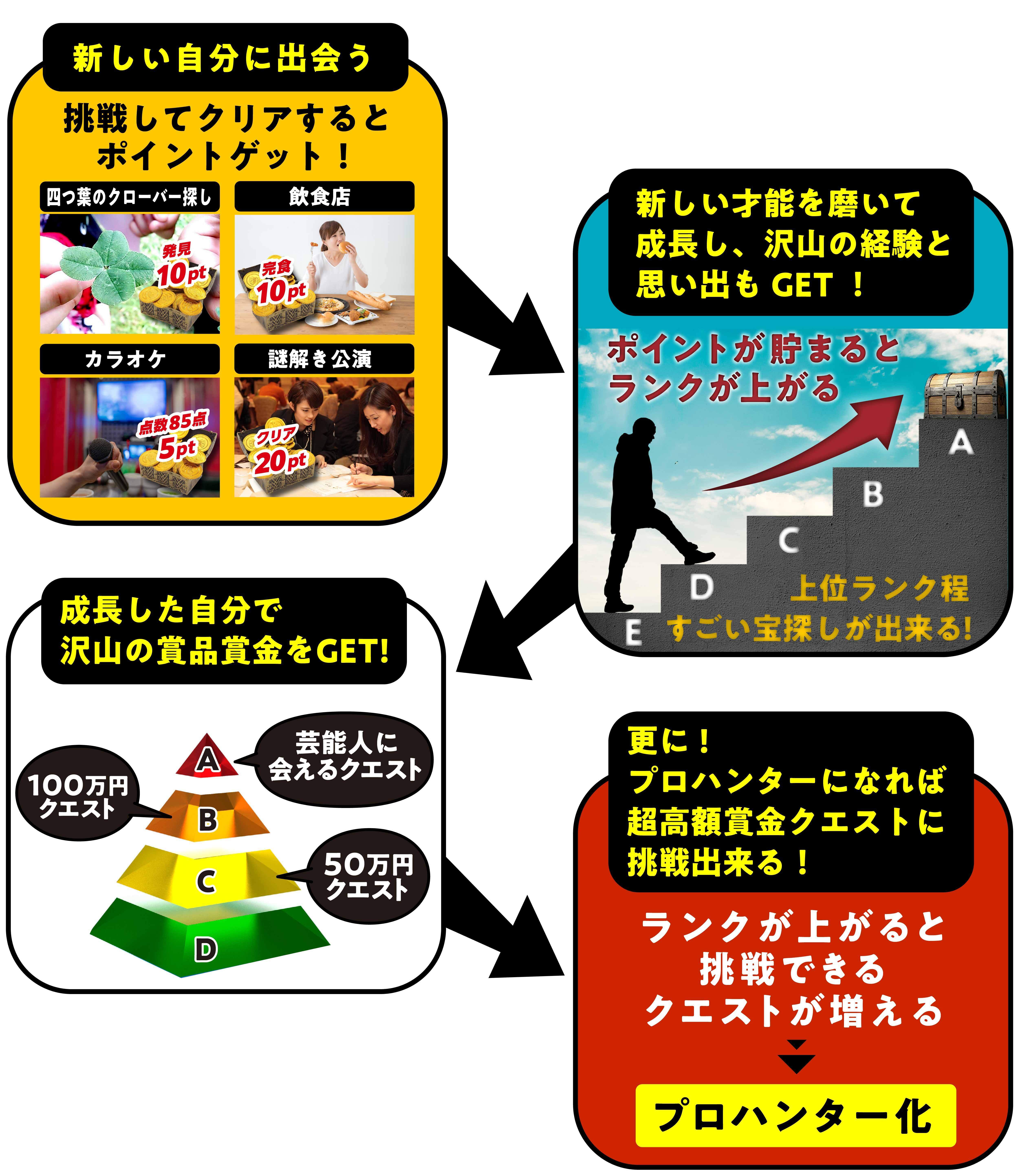 そして一般の方はネット、テレビなどメディアを通してリアルな宝探し体験を疑似体験することが出来、いつかは自分もプロになろうと夢を持ってもらうようにする。