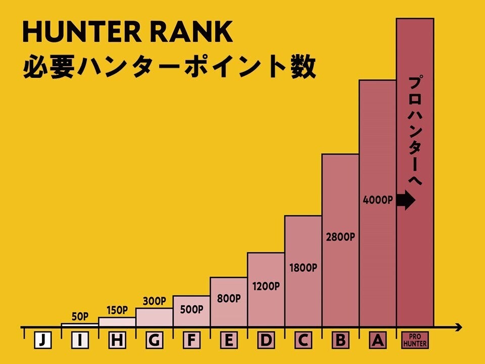ハンターのランクは10段階に分かれていて、ハンターポイントが増えていくとランクが上がっていきます。(レベルアップの効果音が聞こえてきそうですね)