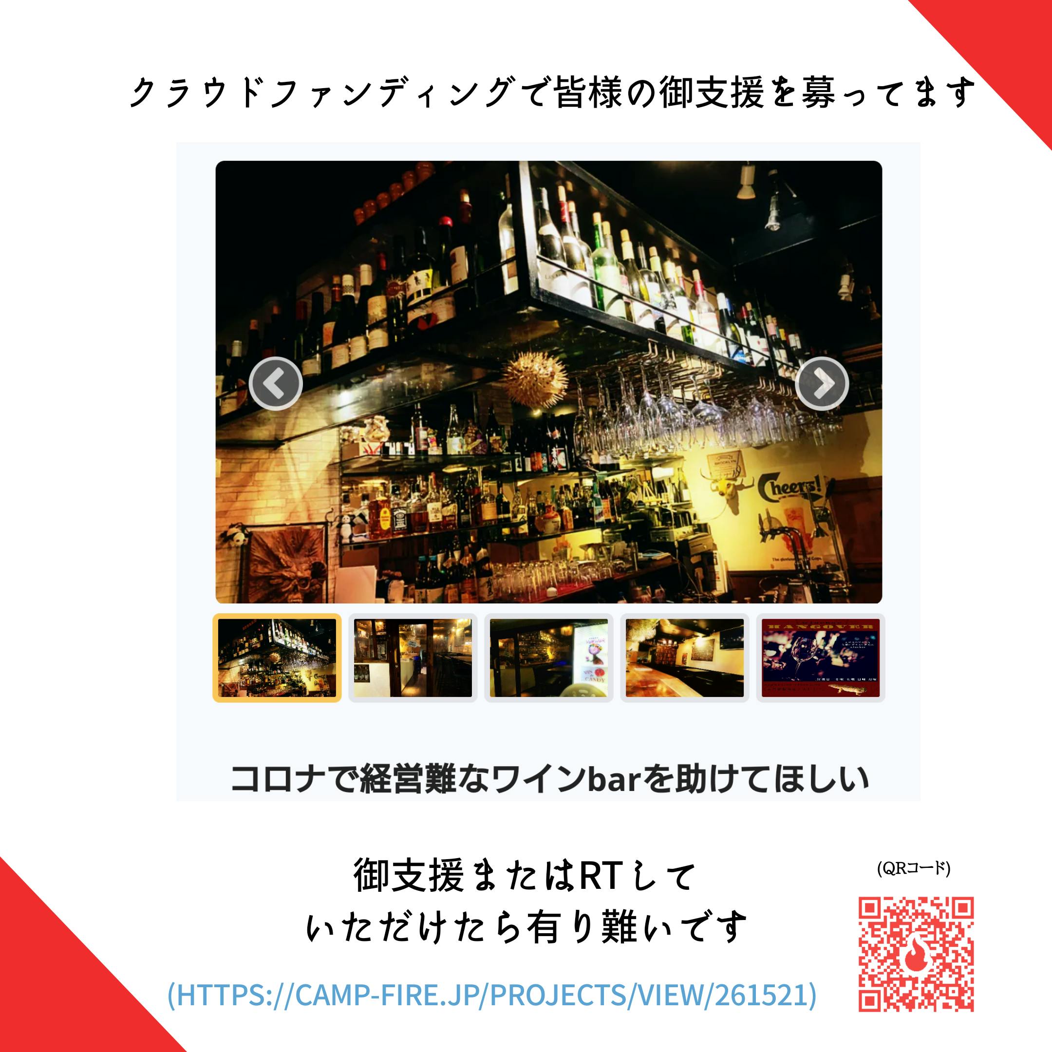 2020/06/12 15:32これまでの御支援、SNSのシェアなどご協力頂きまして誠にありがとうございます。本日6/12(金)でクラウドファンディングが終了致します。残りわずかですが目に留めていただければ幸いです。どうか宜しくお願い致します東新宿winebarHANGOVER もっと見る