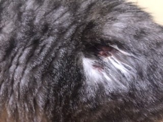 わかりにくいですが毛と皮膚がなく中の肉?と思われるものが見えています。