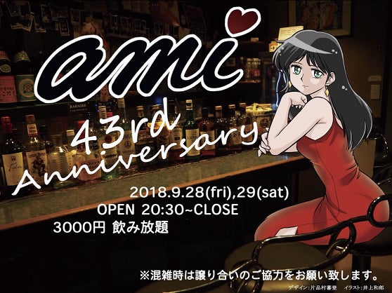 amiは、今年2020年の9月で45周年を迎えますが、新型コロナウイルスがいつ収束するか、いつ営業再開できるか目途が立っていません。そのため仮に9月を過ぎてしまっても、営業再開後に支援して下さった皆様でami45周年パーティーを開催したいと考えております。