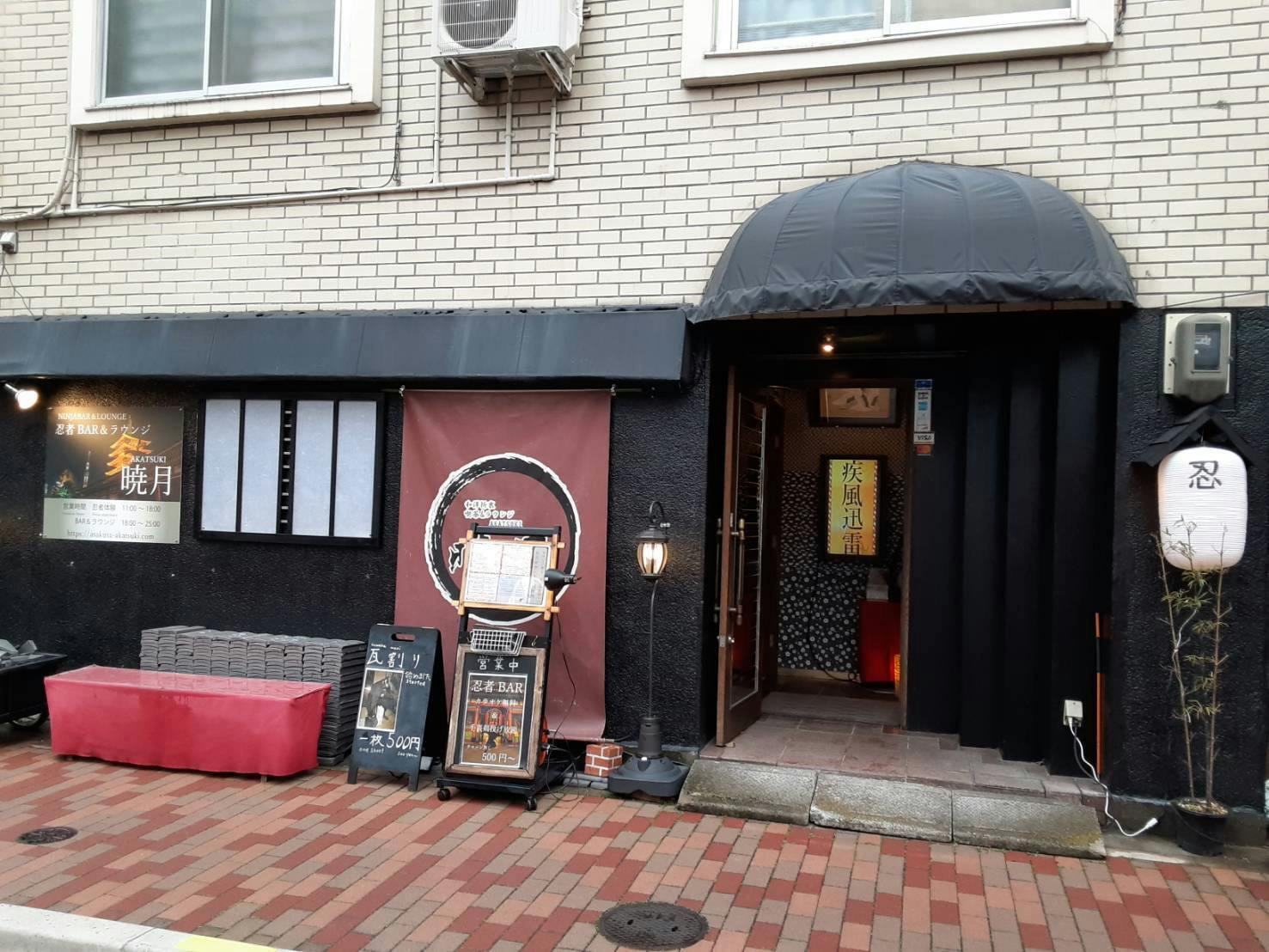 忍者をコンセプトにしたBARの内容:チャージ料金なしカラオケ・手裏剣投げ放題の忍者をコンセプトにしたBARです。ドリンクは100種類以上500円~700円のショットタイプとなります。店内設備として【瓦割り体験】プロジェクターを使用した【影剣劇】が行えお一人でも仲間同士でも楽しい空間となっております。