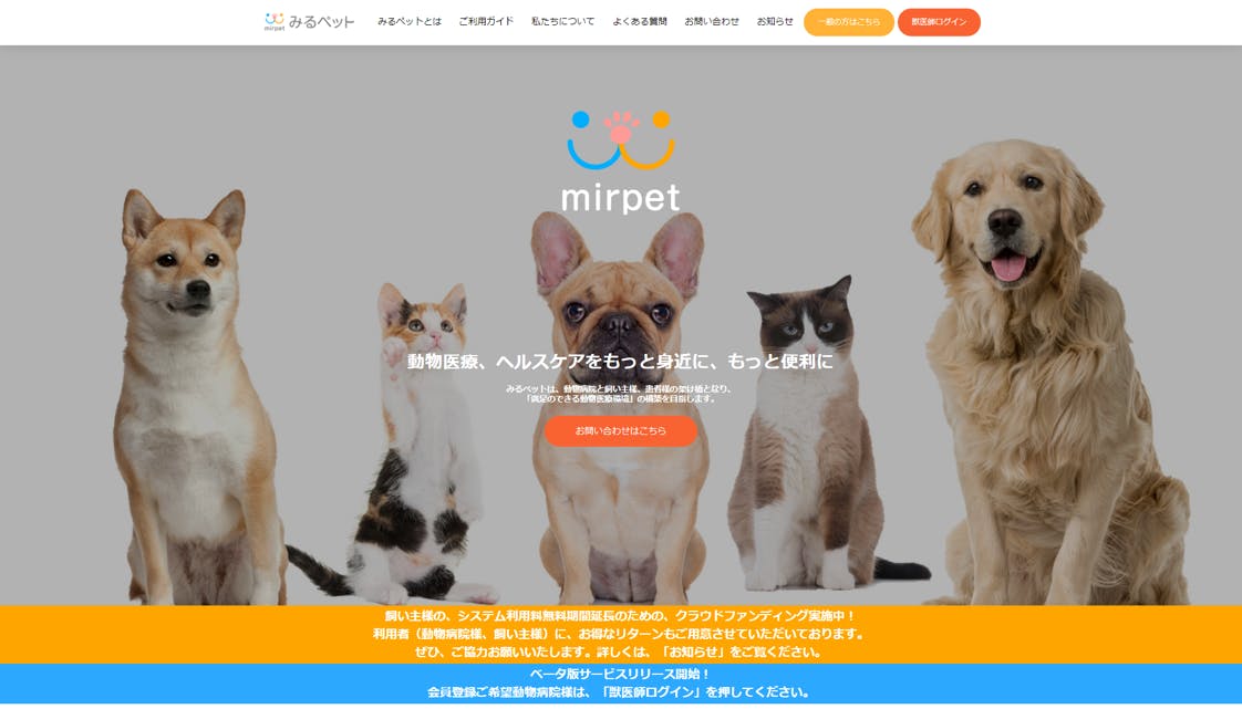 5月22日よりオンライン相談・診療システム「みるペット」のベータ版のリリースを