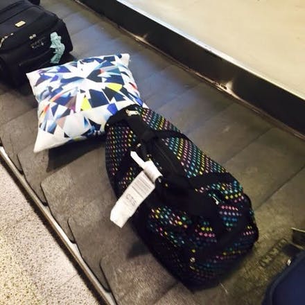 さあ、手荷物と一緒にクッションが運ばれていきます。
