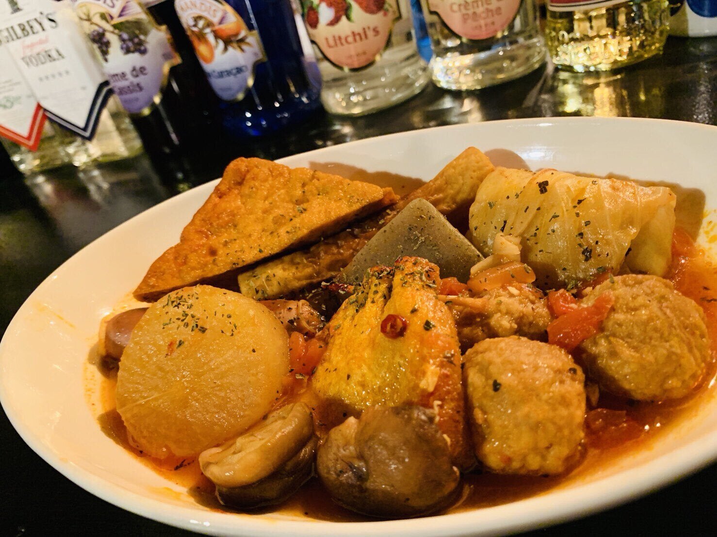 ①「KYU-KABNI名物ぺぺたま&各店主から一杯」