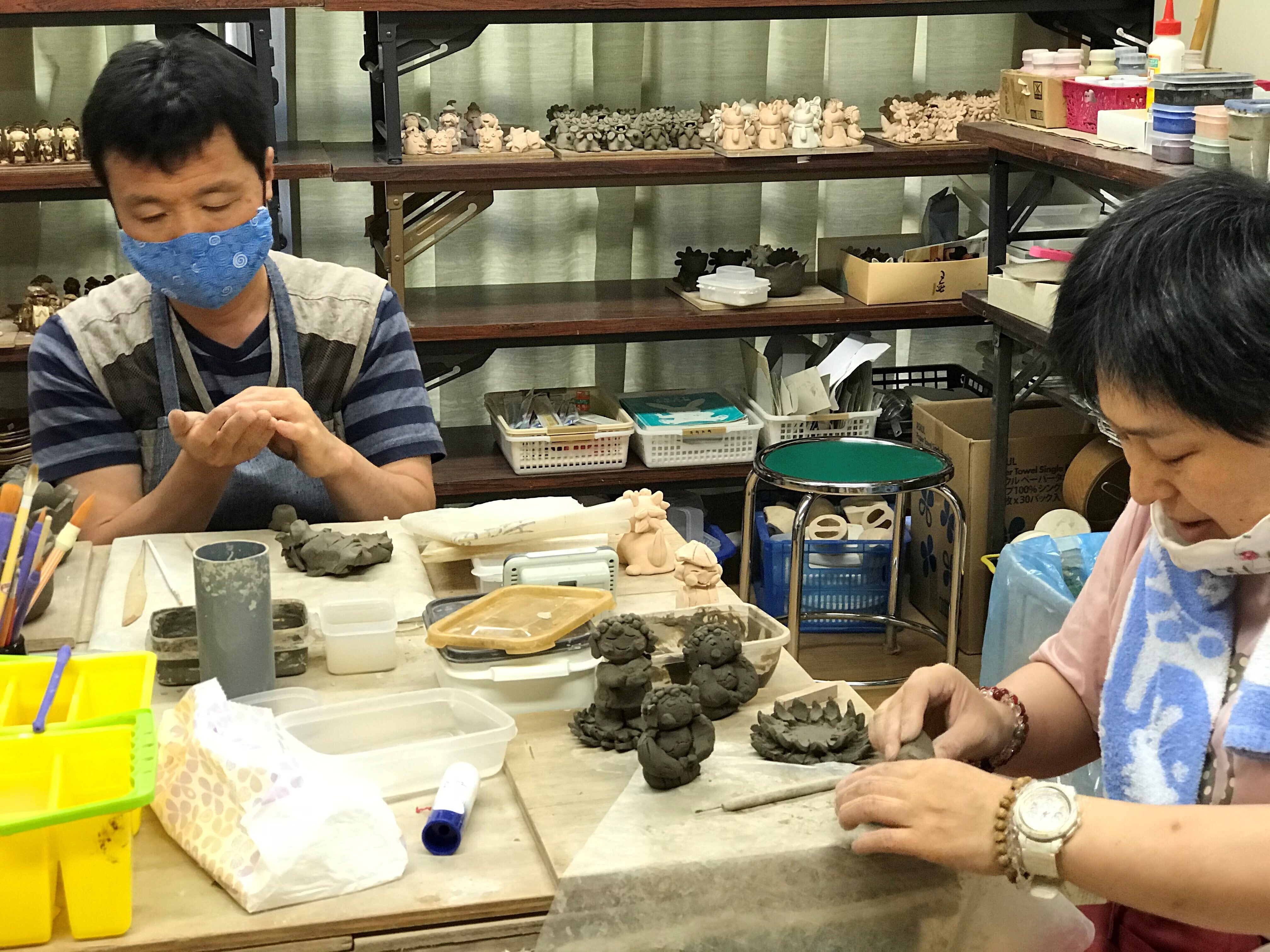 鈴木さんの傍らで、独創的なモチーフを制作しているのが、高島ようさん。