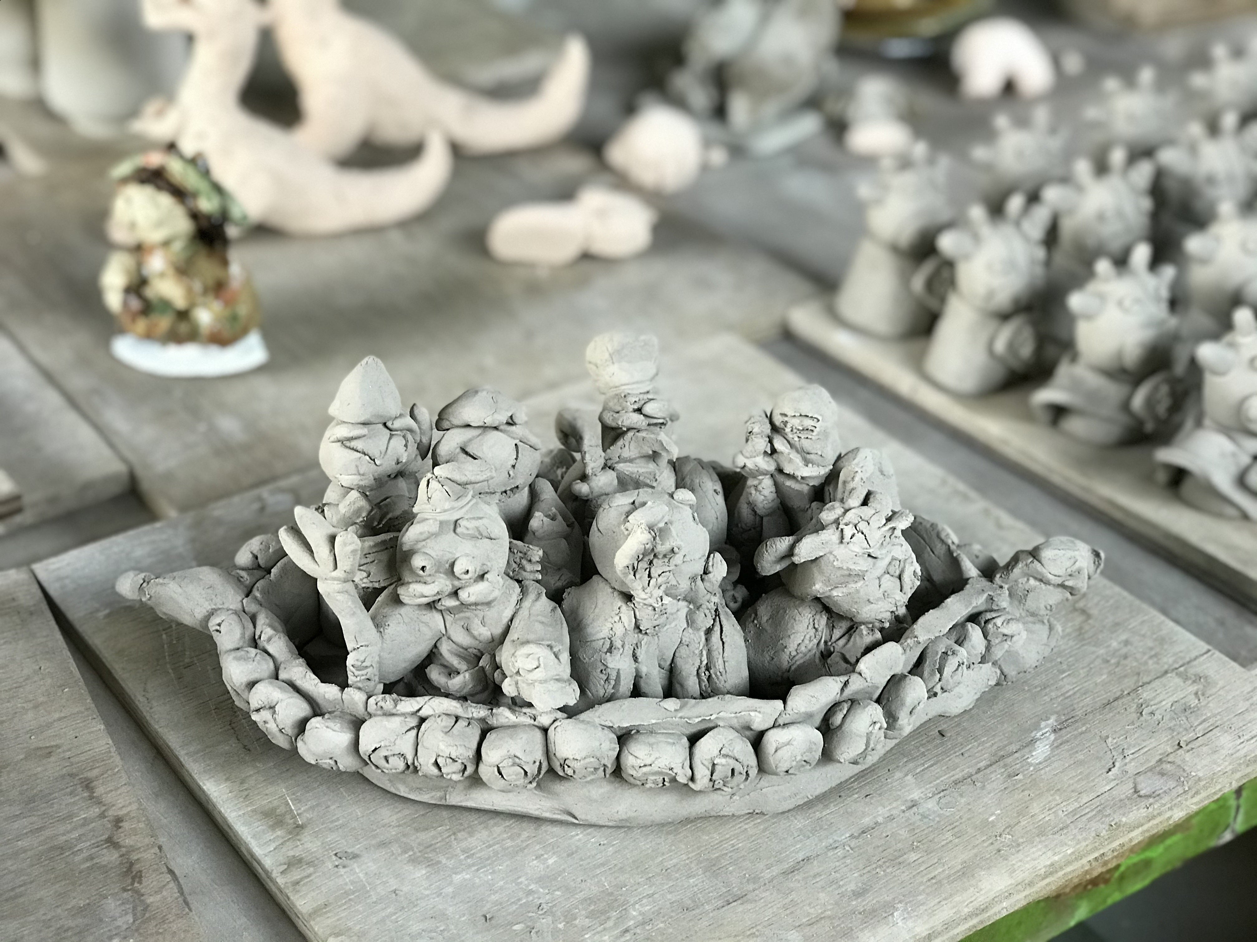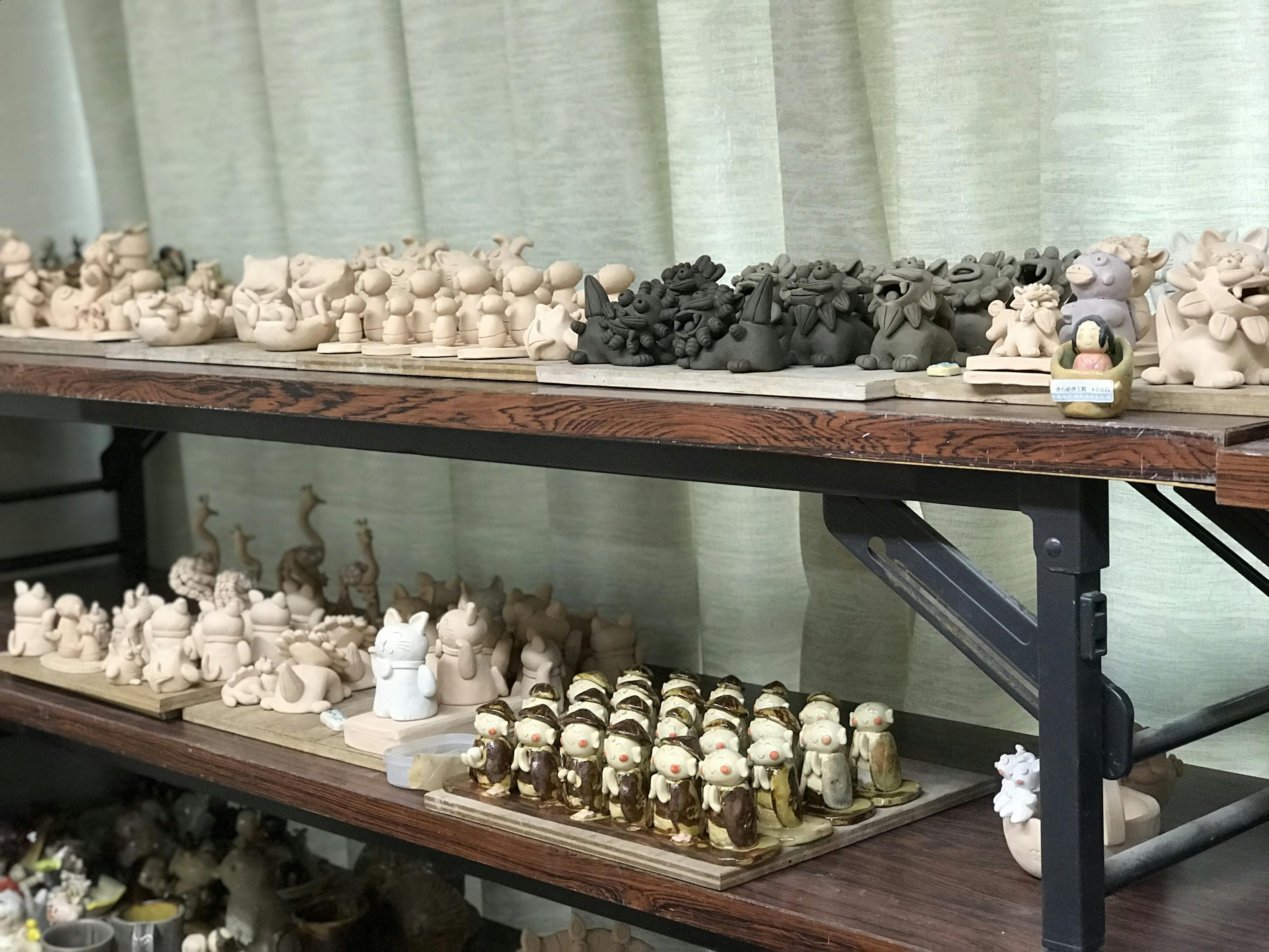 高島さんの作品。乾燥中の七福神たち。(個人的にめちゃ好みです…)