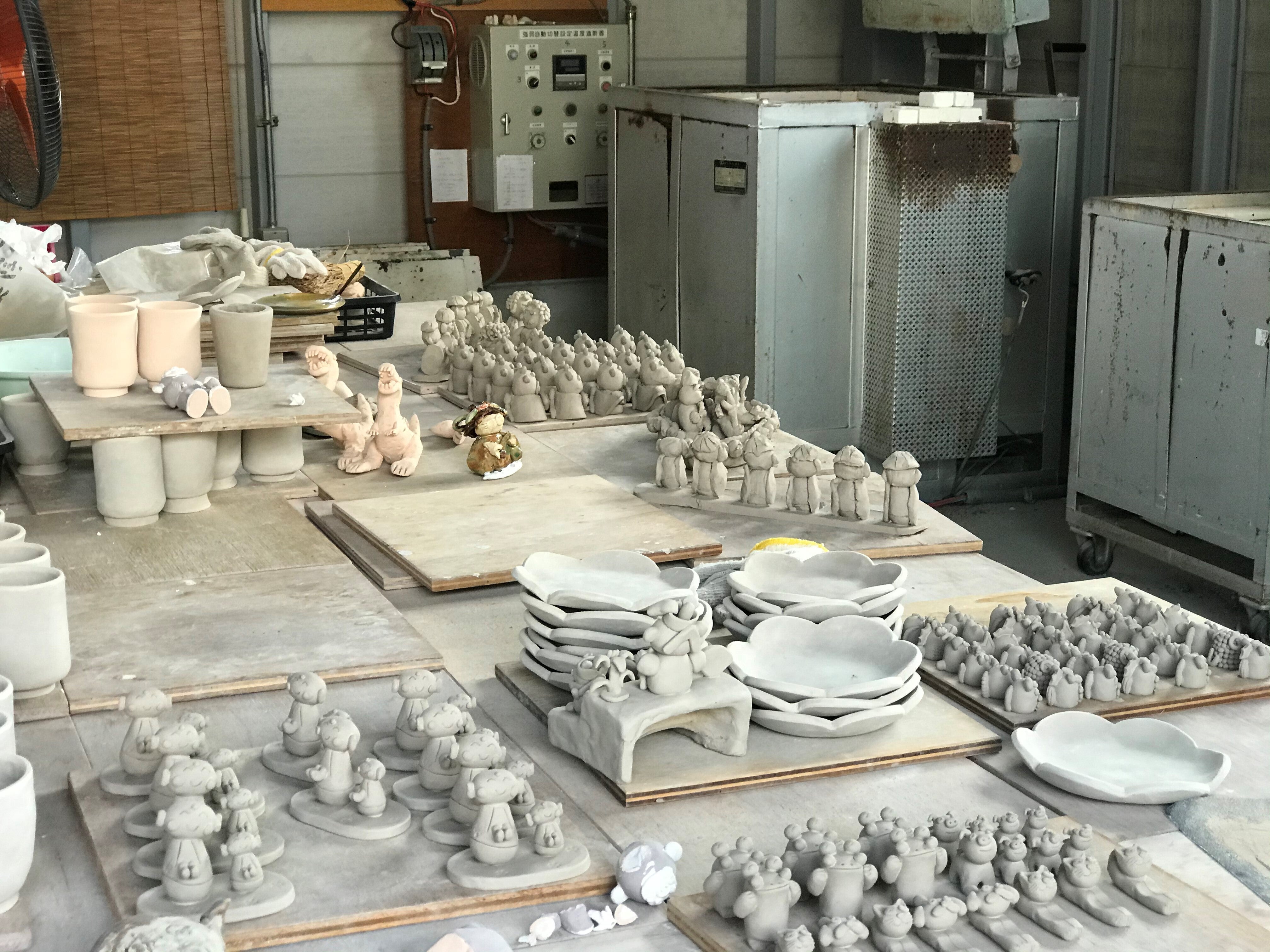 制作のお部屋にも窯のある陶芸室にも、制作中の作品がたくさん。