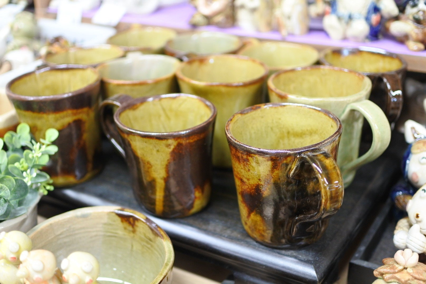 既に焼きあがっているものありましたが、本当に素敵。しかもこのカップ、デサインや色合いが素敵なだけでなく、重厚感がありながらとても軽いのです。みんな違ってみんないい同じ釉薬を使っても、色合いが微妙に異なるので、どんな作品ができるのかは「窯を開けるまで分からない」とのこと。同じ雰囲気でありながら全て違う、正真聡明の一点物。