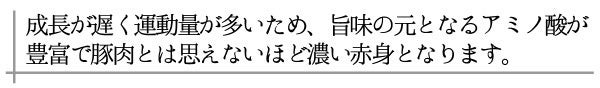 またアグー豚と同じく原種の黒豚のため、繁殖の数が少なく成長も遅い希少な豚です